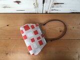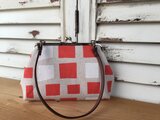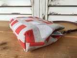 様々な四角形模様の綿麻生地を使用したがま口ポーチです。(内ポケット1つ付き)