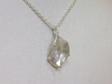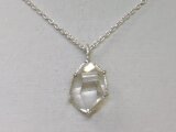 アシンメトリーで個性的なフォルムのハーキマーダイヤをシンプルなペンダントにしました*右上に小さなインクルージョンがありますが透明度が高く変則的なフォルムによる煌めきも綺麗です*ひとつとして同じ物が無い原石による1点モノをお楽しみ下さい*NY州ハーキマーダイヤは高い人気と相反した産出減少により非常に入手困難となってきております*輪郭に合わせた石枠はテクスチャーを入れたアンティークマット仕上げ、黒化遅延処理あり*925チェーン1.3㎜40㎝付き(長さのご希望がございましたら承ります)
