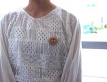 「明日はリンゴの木を植えよう」 木に穴をあけ、クロスステッチでリンゴをデザインしました 〇直径40mm 重さ 7g 〈素材〉 木 桜