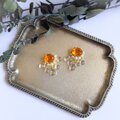 オレンジの印象的なオーバルストーンを主役にシャラシャラ涼しげなピアスに仕上げました。