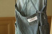 90cm丈バッククロスエプロン/ヒッコリーストライプ(紺)