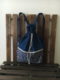 本体ブルーデニム×ポケット部ネイビーのネイティヴ柄です✳︎