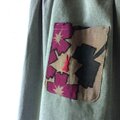 左右の裾とポケットに、いろいろな銘仙をあしらった