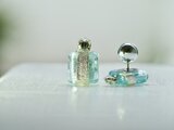 アイスブルーとシルバーのスクエアピアス