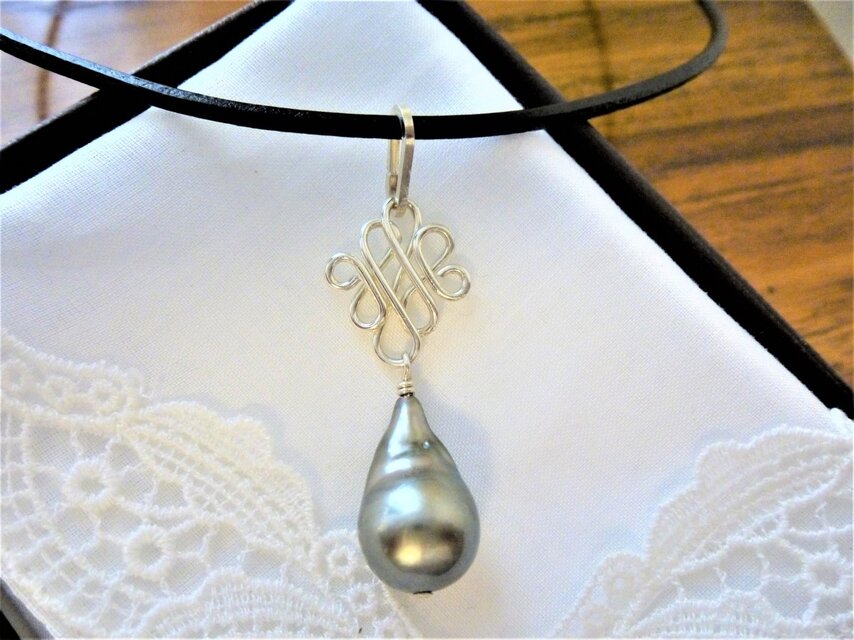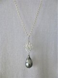南洋黒蝶パールでもしずく型のシェイプ・グレー系の落ち着いた表情で