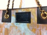 本革にゴールドと青サビを染色加工したチェーントートバッグです。