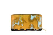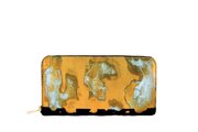 本革にゴールドと青サビを染色加工したラウンドファスナーの長財布です。