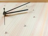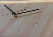 文字盤は、厚さ2mm幅3cmの赤みのあるヒノキの板を、ストライプ状に
