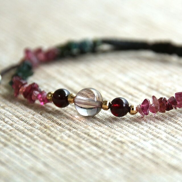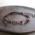 細身のアンクレットですが、透明感のあるピンクとグリーンのトルマリンが綺麗で、