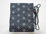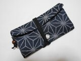 濃紺銀ラメデニム生地に銀泥で麻の葉を金彩加工しました道中財布です。