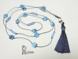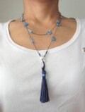チェコビーズのブルータッセルロングネックレス