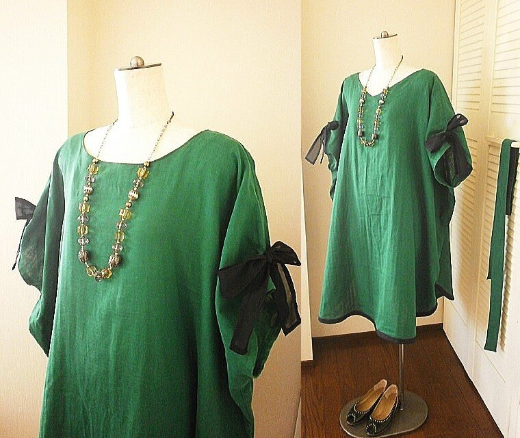鮮やかで 綺麗なグラスグリーンのダブルガーゼ素材 ♬
