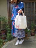 夏に爽やかリメイク☆紅葉織りの白紬でミニバッグ☆内布菊模様の銘仙