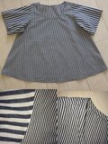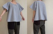 細いストライプの方、身頃部分はポコポコとしわ感のある素材です。