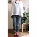 後ろ下がりのデザインにしましたので、ヒップラインも気にすることなく、パンツ、スカートと組み合わせて着て頂けます。