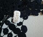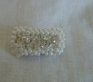 小さなオフホワイトの羊毛フェルトブローチに、2種類のビーズ(パール調ホワイト、クリア)を刺繍しました。