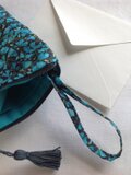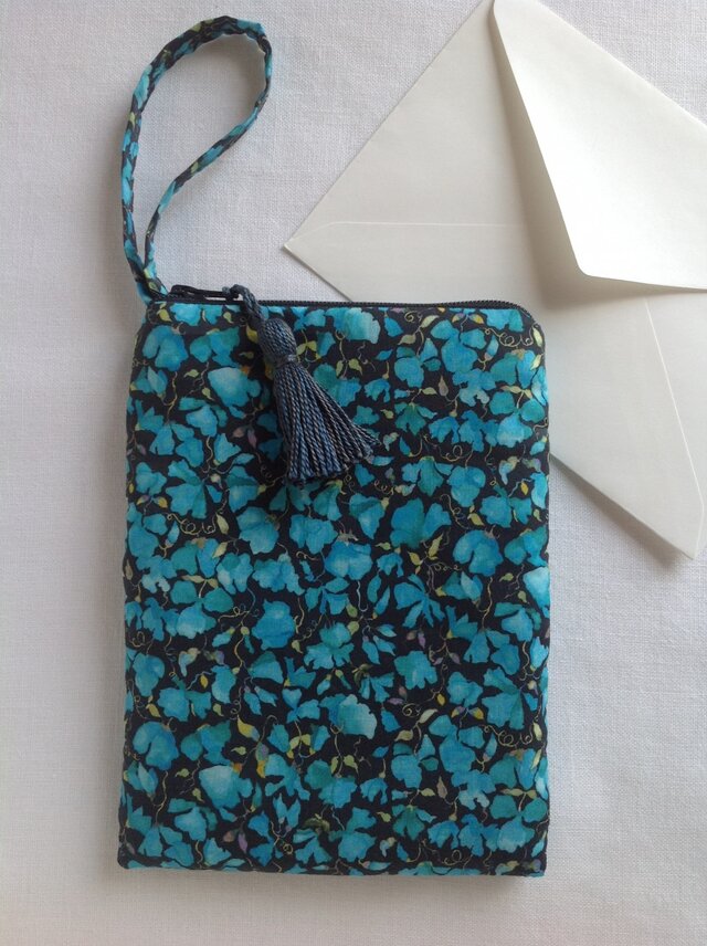 きれいな作品ありがとうございました。布の色に合わせたタッセルがかわいいです。▼フラットポーチは、今使っている8インチのタブレットにぴったりの大きさです。こんなかわいいポーチから、大きなタブレットがでてくる意外性?▼取っ手付きしっかりめポーチは、着物を着たときの小バッグにします。浴衣でも使えますね。