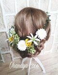 結婚式の前撮り用にお願いしました。 無事に前撮りが完了したので、感想書かせて頂きます。 自分では花の色合いや種類を決めることができず、色打掛の写真を元に作って頂きました。 完成品は依頼した通り、上品で存在感のある綺麗な花飾りでした。 実際に色打掛を着てヘアメイクさんに付けてもらったら、着物とピッタリ! 大大大満足です! お願いして本当に良かったです。 ありがとうございました。