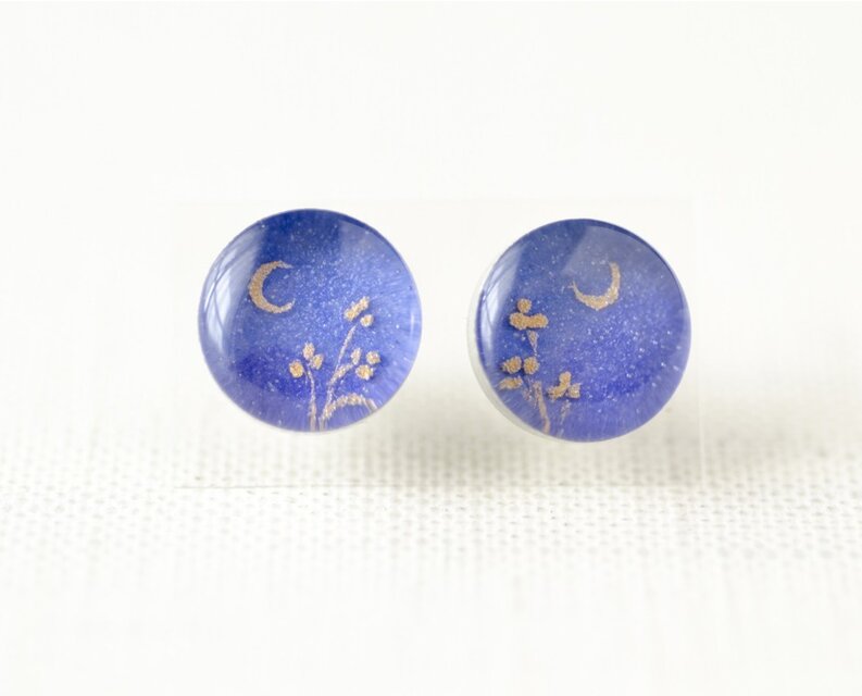 手描きのオリジナルイラストをレジンで閉じ込めたピアスです。