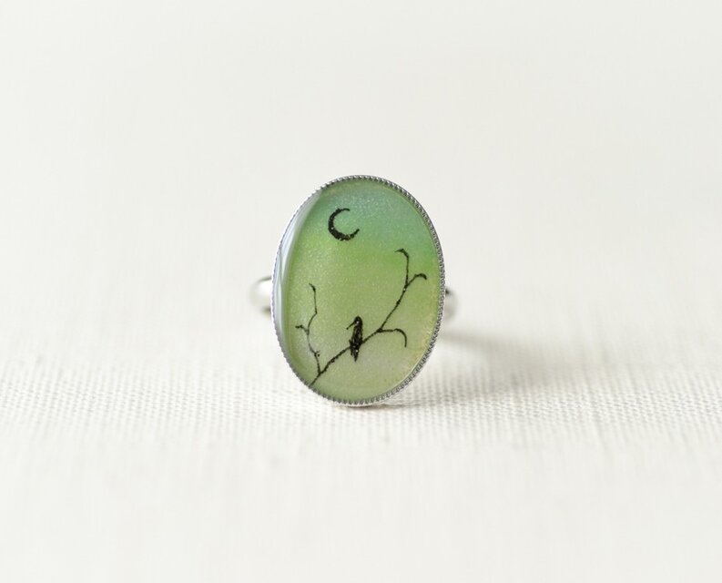 手描きのオリジナルイラストをレジンで閉じ込めたゆびわです。