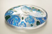 箸置き用のガラスの裏面に薔薇のお花を彫り込みました。