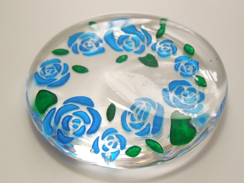ぷっくりしたガラスとミニ薔薇が、可愛らしい箸置きに仕上がりました。