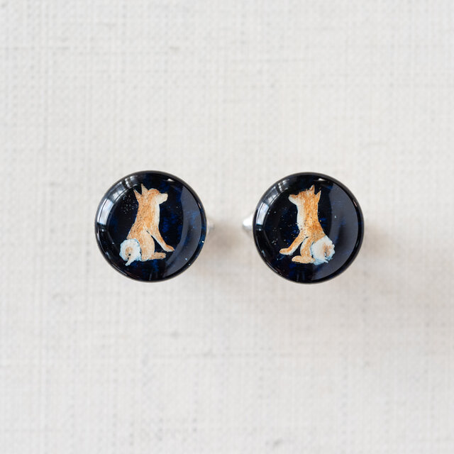 手描きの絵を樹脂で閉じ込めたカフスです。