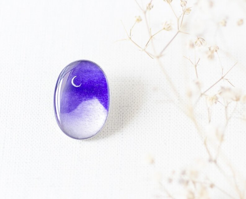 ペンダントブローチ36/山と三日月