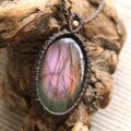 こちらは、ピンクパープルのシラーがでるラブラドライトのネックレスです。