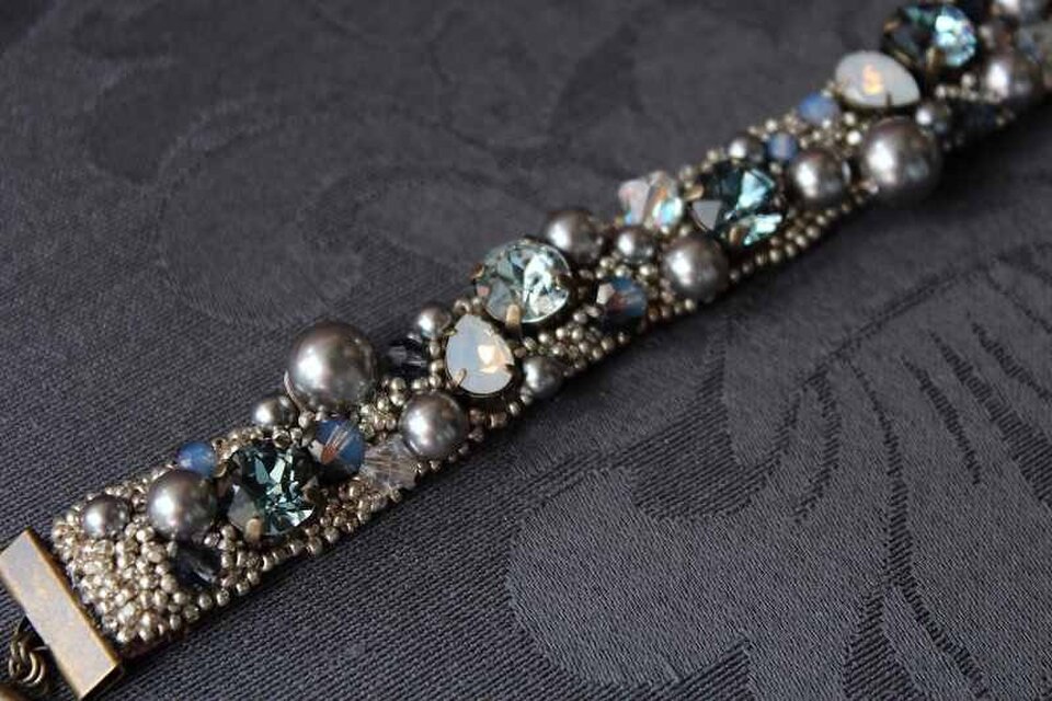 アンティークビーズ、スワロフスキー、パールを贅沢に使ったブレスレット。