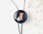 柴犬を描いた絵(原画)を樹脂でとじこめたループタイです。