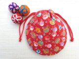 ミニ巾着袋 赤色金彩小まり柄 御守り アクセ収納 七五三 プレゼントにも