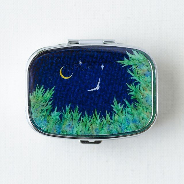 夜空にうかぶ三日月を描いたオリジナルイラスト(原画)を樹脂でとじこめました。