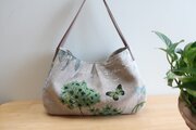 表地は、素材感たっぷりの花と蝶柄フランスリネン100%で