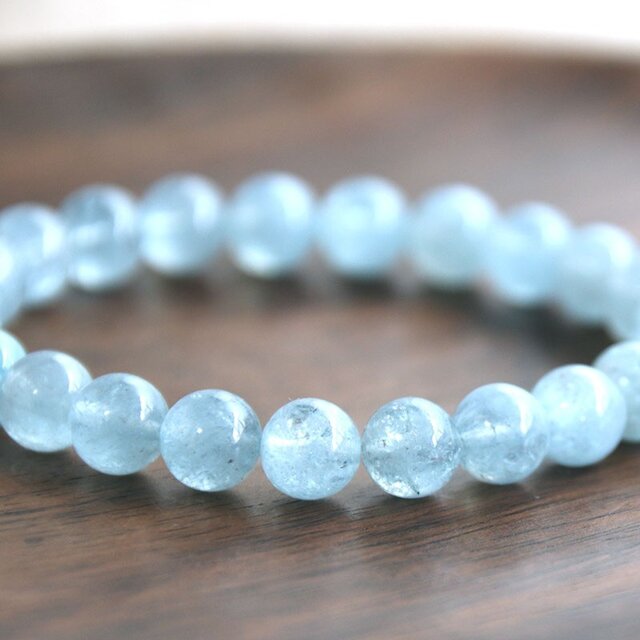こちらは、爽やかブルーがとても美しいアクアマリンのブレスレットです。