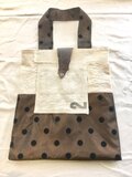 程よくくたり感のでたリネンとバイカラーでサテン地にドットがフロッキー加工されたファブリックとのコンビが目を惹く印象的なバッグです。