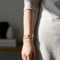 あたたかいゴールド色の真鍮と合わせ、シンプルなバングルにしました。