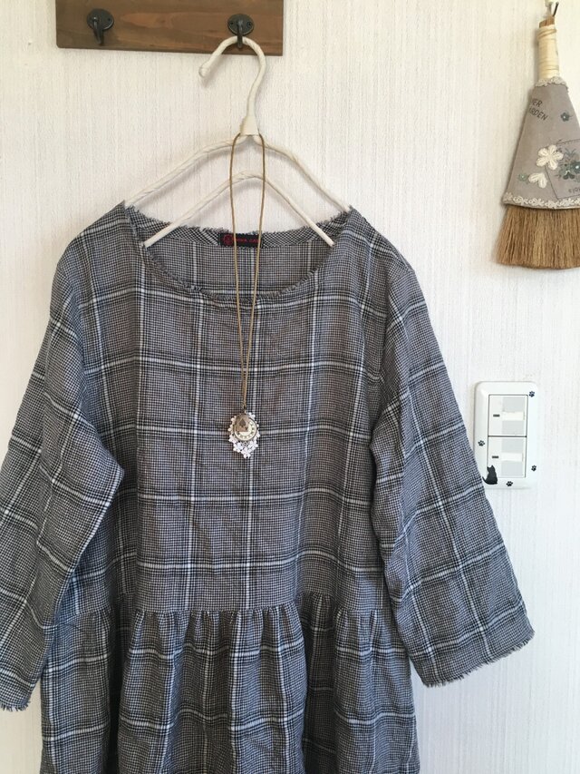 ・千鳥格子のシャーリングコットンでワンピースお作りしました。