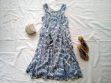 ★★ 柔らかコットンのワンピース、ブルーの複雑模様です ★★