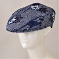 細かな絞りの柄の間に、流水に紅葉の柄が涼しげな、浴衣地から作ったハンチングです。