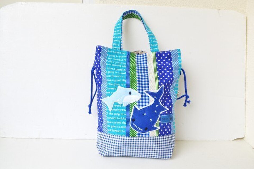 ジンベイザメ&イルカの巾着バッグ(大)体操着入れ