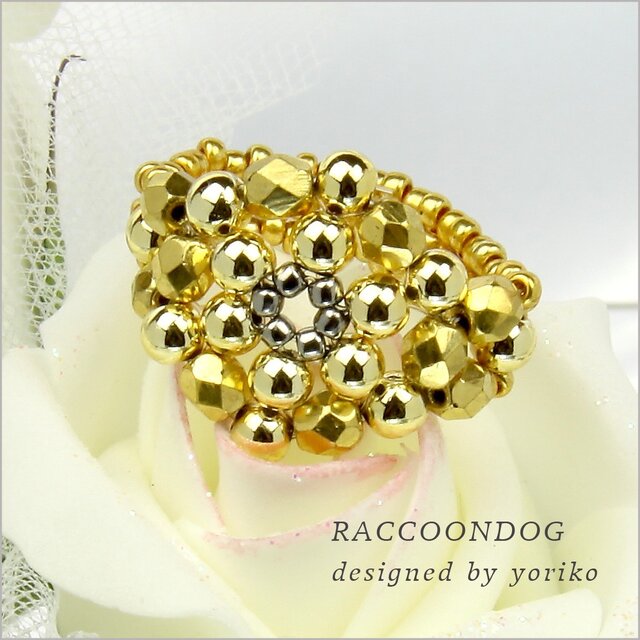 ゴールドフラワー【チェコ フルコートゴールドビーズリング】 《ビーズアクセサリー》