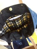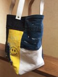 新作着画☆デニム&倉敷8号帆布トートバッグ Mサイズ yellow白革スマイル