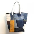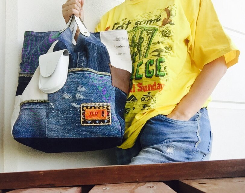 送料無料☆デニム&倉敷8号帆布トートバッグ Lサイズ tribal白革