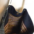 裏面/マスタードイエローウォッシュ加工倉敷帆布&デニムシルエット加工 内面/トライバル柄 綿・ポケット2個・マグネットホック