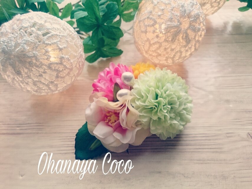 アーティフィシャルフラワーをひとつひとつ丁寧に加工し、専用の3wayタイプヘアクリップでfunwari仕上げたフラワーアクセサリーです。