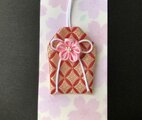 素敵なお守り袋が2つ届きました。 絞りの生地の色合いと大輪の花がとても華やかでキュートです。 白梅のものは、奥ゆかしさと気品を感じました。 どちらも大変気に入りました。大切に使わせていただきます♪