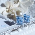冷たい水の中に小さな青い小花が揺れて浮かんでいるような涼し気なピアスです。