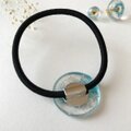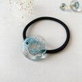 透明レジンの中に水色と少しだけシルバーのラメを入れてシンプルなのに光にあたるとキラキラと存在感。