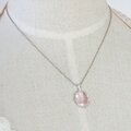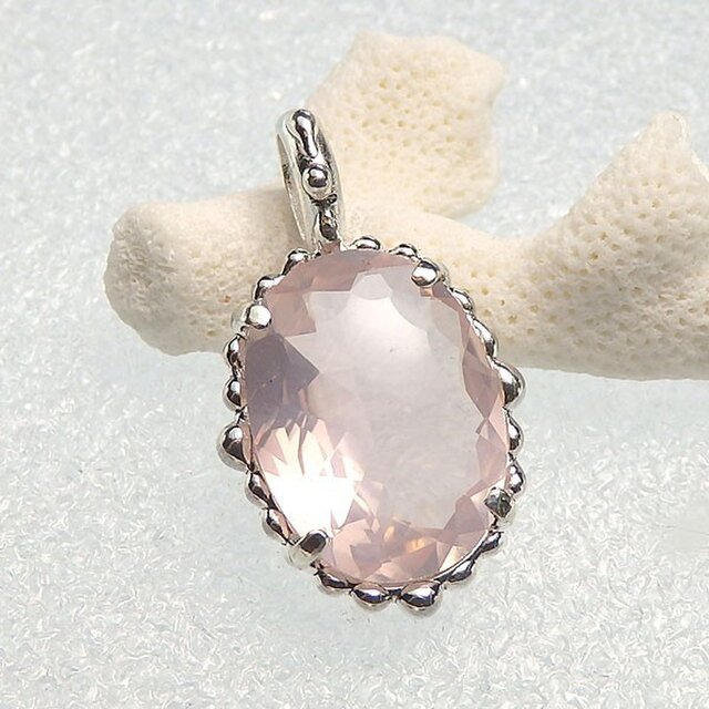 透明感のある優しいピンク色が魅力的なローズクォーツを粒飾りの可憐なペンダントに仕上げました。